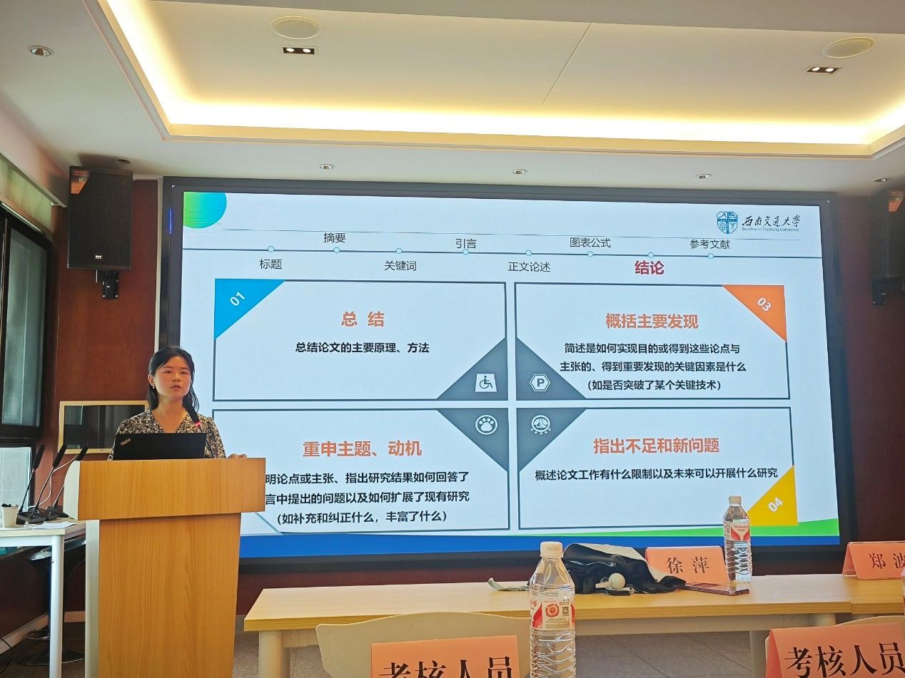 徐萍老师首先对《西南交通大学学报》进行了简要介绍,接着对论文的各个部分进行了结构化写作解析,详细分析科技论文中每个部分的写作要求和规范,强调科技论文中的逻辑性、凝练度和准确度。