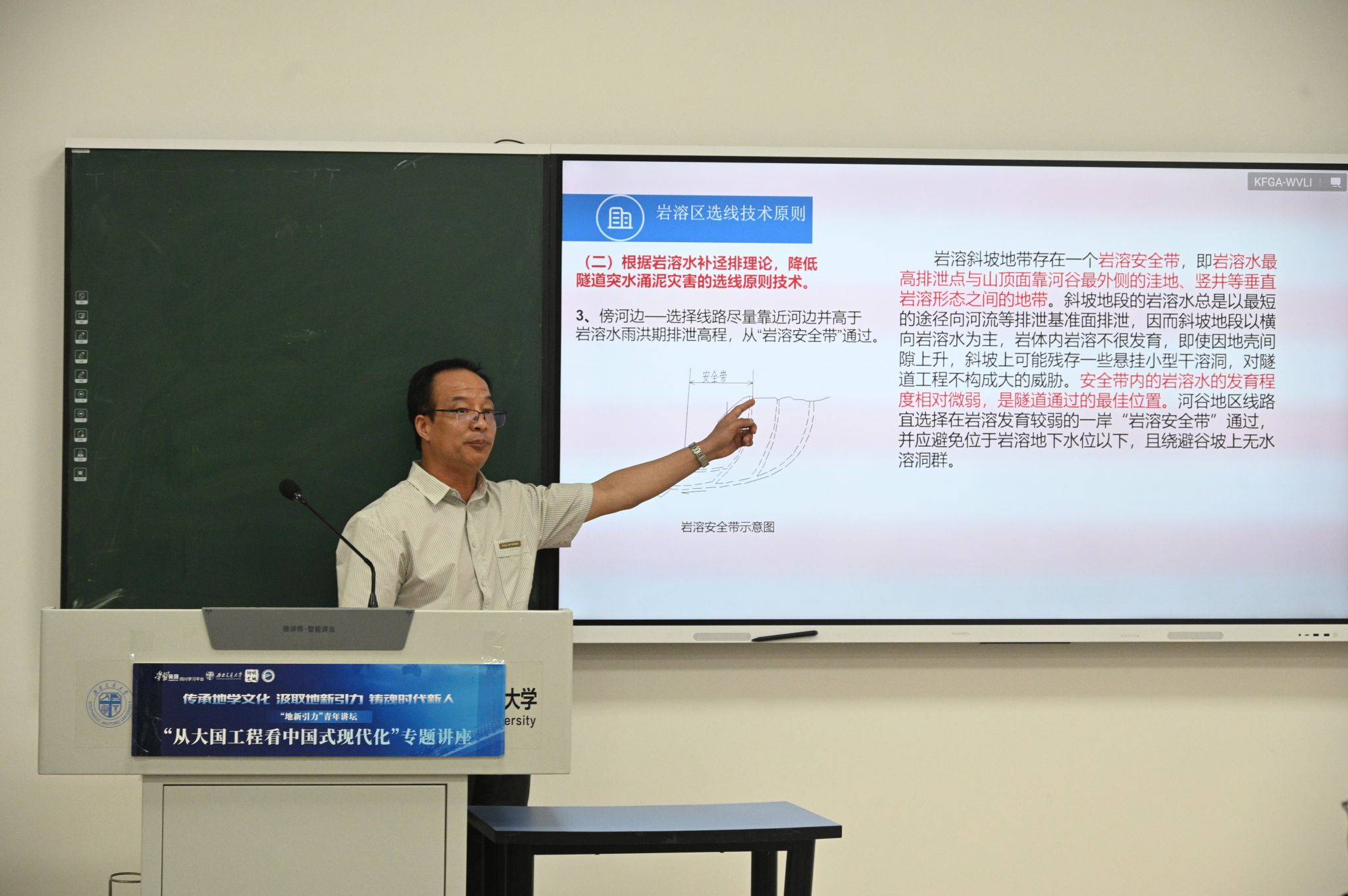 在四号教学楼X4247教室隆重举办了“从大国工程看中国式现代化”专题五讲座。本次讲座聚焦岩溶区铁路综合选线技术,邀请了业内知名专家中铁二院教授级高工曹化平作为主讲人,讲座由拉斯维加斯娱乐城
