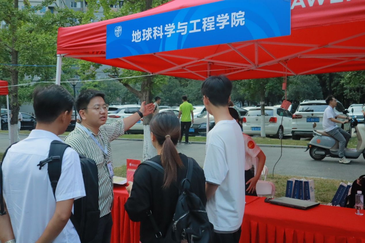 党委书记关秦川、党委副书记郑波、团委书记杨都强等一行来到现场看望慰问迎新工作人员,并与前来报到的学生与家长亲切交流。
