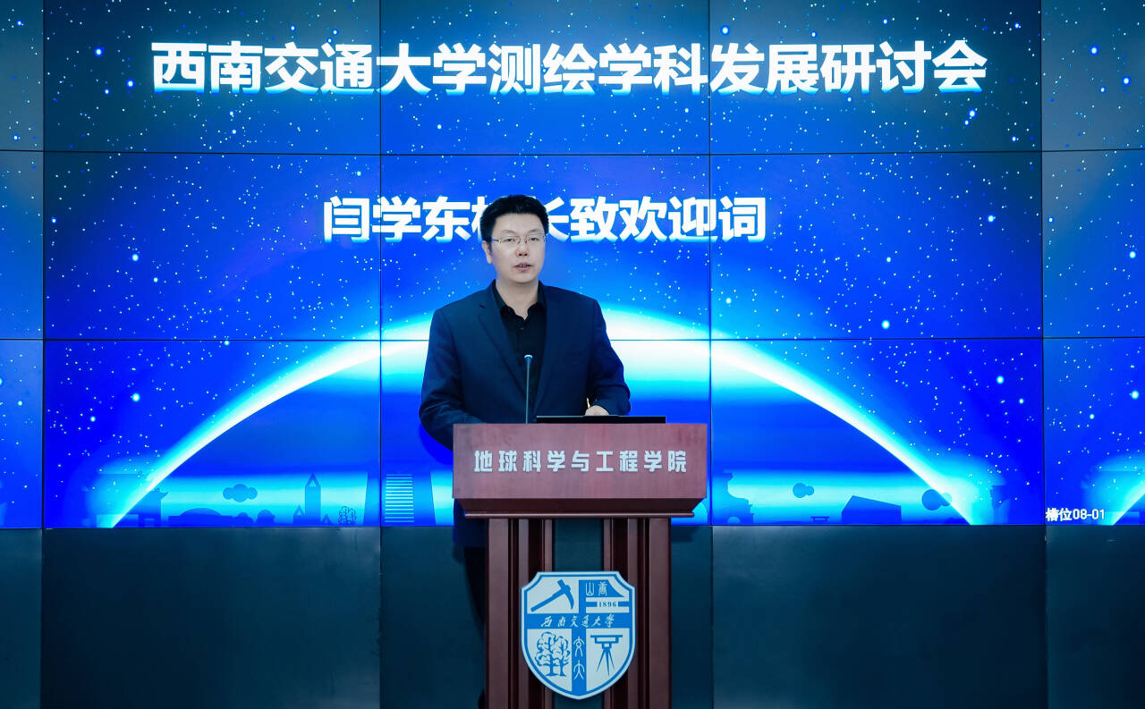 闫学东代表学校致欢迎词,他回顾了学校发展历史和测绘学科的积极贡献。他强调,当前测绘学科面临新的机遇和挑战,希望与会专家能增进交流、深化合作,共同探索学科前沿,推动技术创新,促进学校测绘学科更好服务于国家重大战略需求和社会经济发展,为发展新质生产力贡献更多力量!