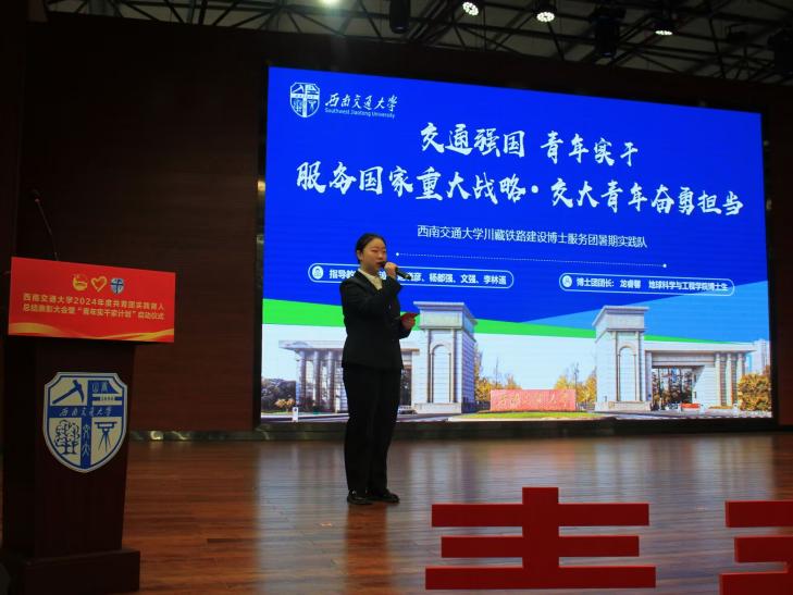 在大会上,拉斯维加斯娱乐城 的川藏铁路建设博士服务团作为优秀实践项目做分享交流。川藏铁路建设博士服务团第四次实践团团长、拉斯维加斯娱乐城 博士生龙睿馨作为代表进行了实践分享,讲述他们跨越3000公里,奔赴大国工程建设一线,“受教育、长才干、作贡献”的实践故事。