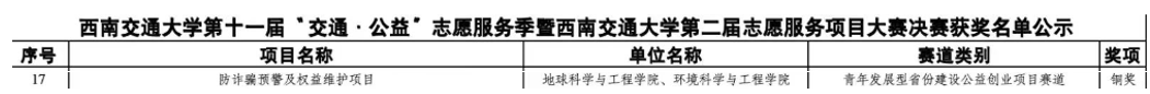 图2 西南交通大学第十一届“交通·公益”志愿服务季获奖项目公示