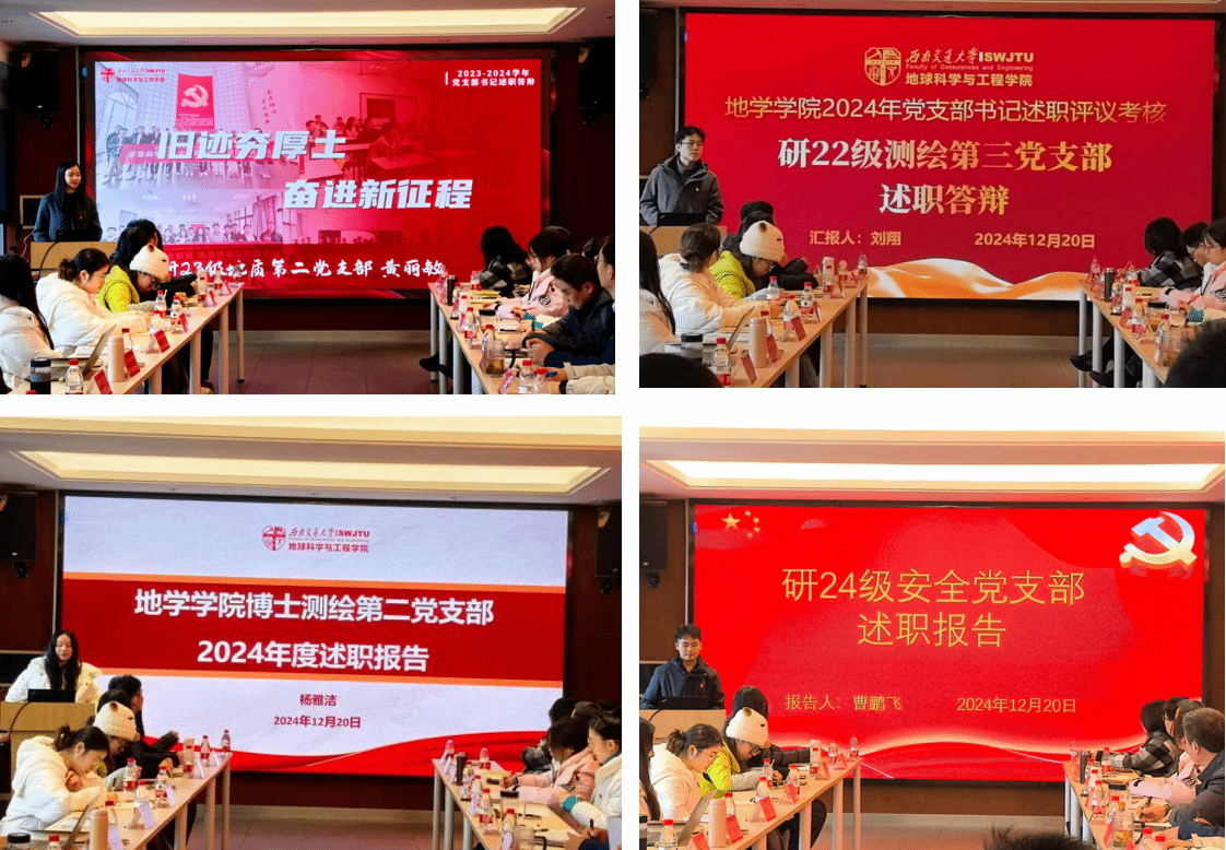 在学生党支部书记的述职环节,各党支部书记依次进行了汇报,重点介绍了支部在制度建设、党日活动、作用发挥、学风建设等方面的工作。各位书记结合本支部的实际情况,从本、硕、博不同年级和专业的特点出发,展示了学生党员在发挥学科特色、服务师生,以及创新党员管理和活动形式方面的实践情况。通过具体的实例,展示了支部在推动思想政治教育、加强党支部建设和促进学生全面发展等方面的具体成效。