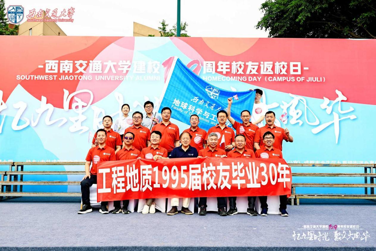 5月10日,“忆九里时光,聚交大风华”——西南交通大学建校129周年校友返校日活动于九里校区篮球场顺利举行。1995届水文地质与工程地质校友曹化平、卢才金、刘道清、郭全元、吴家振、刘春生、李强、郭玉峰、秦帅华、江中平、李向东、刘兰利、陈外联、王青川、鄂宇共15人全程参与了此次返校日活动,共话青春记忆。