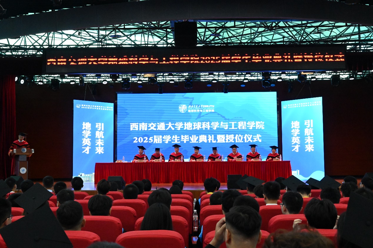 2025届学生毕业典礼暨授位仪式圆满结束后,同学们与毕业班辅导员老师一同上台,在“地学英才,引航未来”“竢实扬华,自强不息”的口号声中留下了青春大合影。祝愿2025届全体毕业生在人生的新赛道上,心系“国家事”,肩扛“地质责”,手执“测绘笔”,胸怀“消防志”,以专业所学服务时代所需,以青春之我筑家国之梦,跑出属于交大地学人的加速度,在广阔天地中绽放属于自己的光彩!