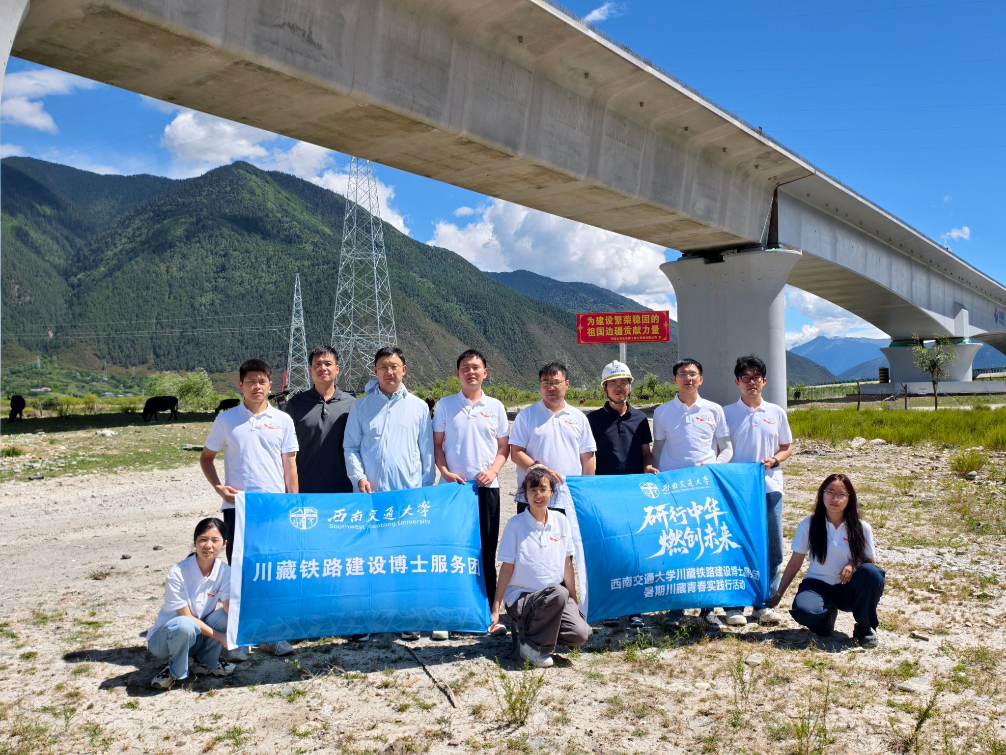盛夏高原,群山巍峨。2025年8月4日-8月9日,在被誉为“世纪工程”的高原铁路建设腹地,一支来自西南交通大学的实践队伍——高原铁路建设博士服务团,正踏着先行者的足迹,深入国家战略工程最前沿,将论文写在壮阔山河间,将爱国情融入钢铁脉络中。