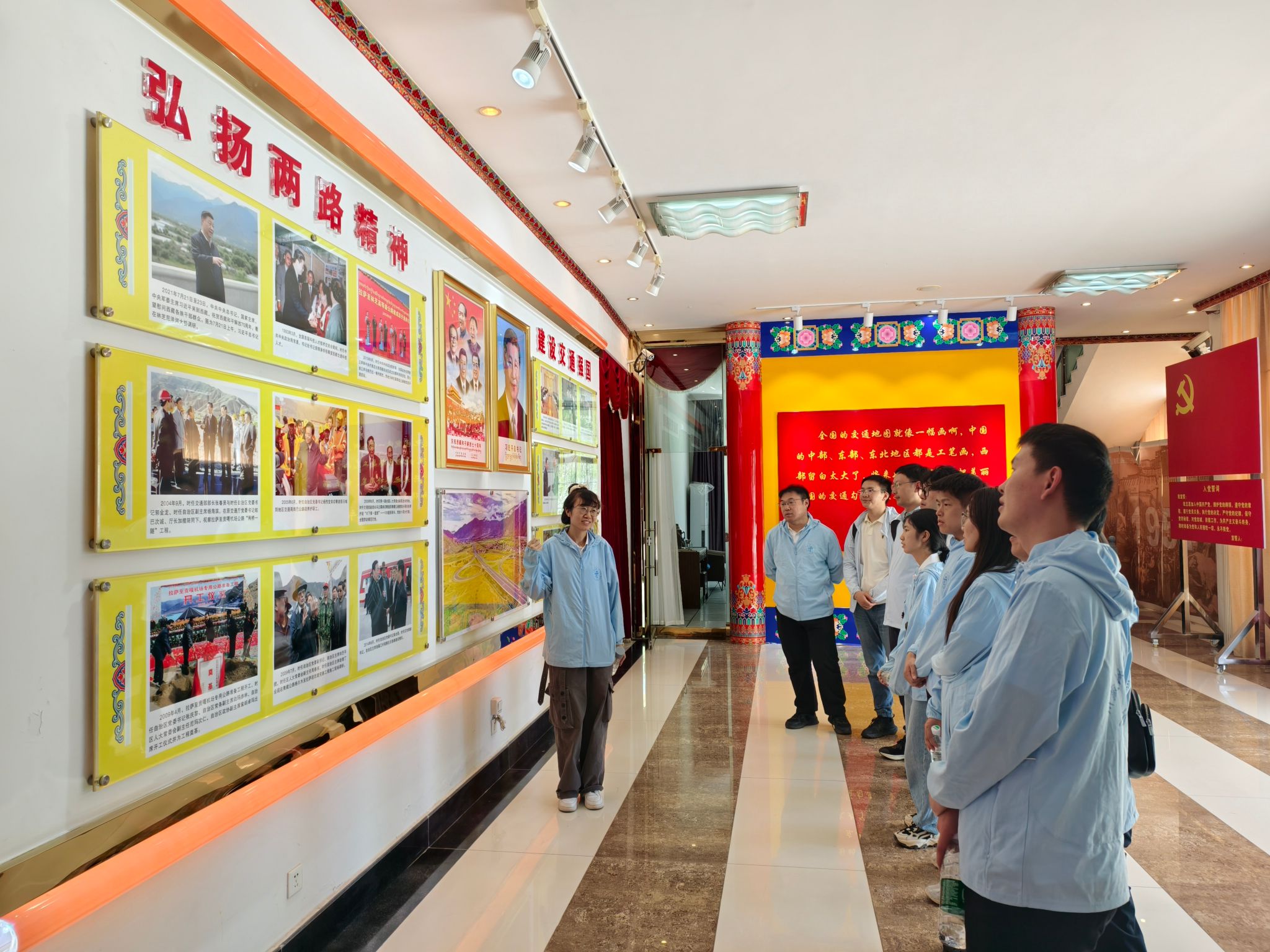 追寻精神力量,方能行稳致远。博士服务团专程前往“两路”精神纪念馆、林芝烈士陵园等地,在一件件历史文物、一段段感人故事中,沉浸式感悟“一不怕苦、二不怕死,顽强拼搏、甘当路石,军民一家、民族团结”的“两路”精神丰碑。这份流淌在筑路者血液中的红色基因,跨越时空,与新时代高原铁路建设者们的奋斗身影交相辉映,为青年博士注入了强大的精神动能。格桑花开映山河,团结奋进新征程。在全国民族团结进步模范集体——林芝嘎拉村,村支书边巴与村主任尼玛多吉正自豪地为博士团成员介绍依托交通改善与党的富民政策带来的五年巨变。整洁的藏式民居、兴旺的乡村旅游、村民脸上洋溢的幸福笑容、史料翔实的“团结颂”主题教育展馆,生动诠释了“一条路带动一方富,一条线连起万家心”的深刻内涵,让博士们对高原铁路作为民族团结路、幸福路、致富路的战略意义有了更直观、更深情的理解。