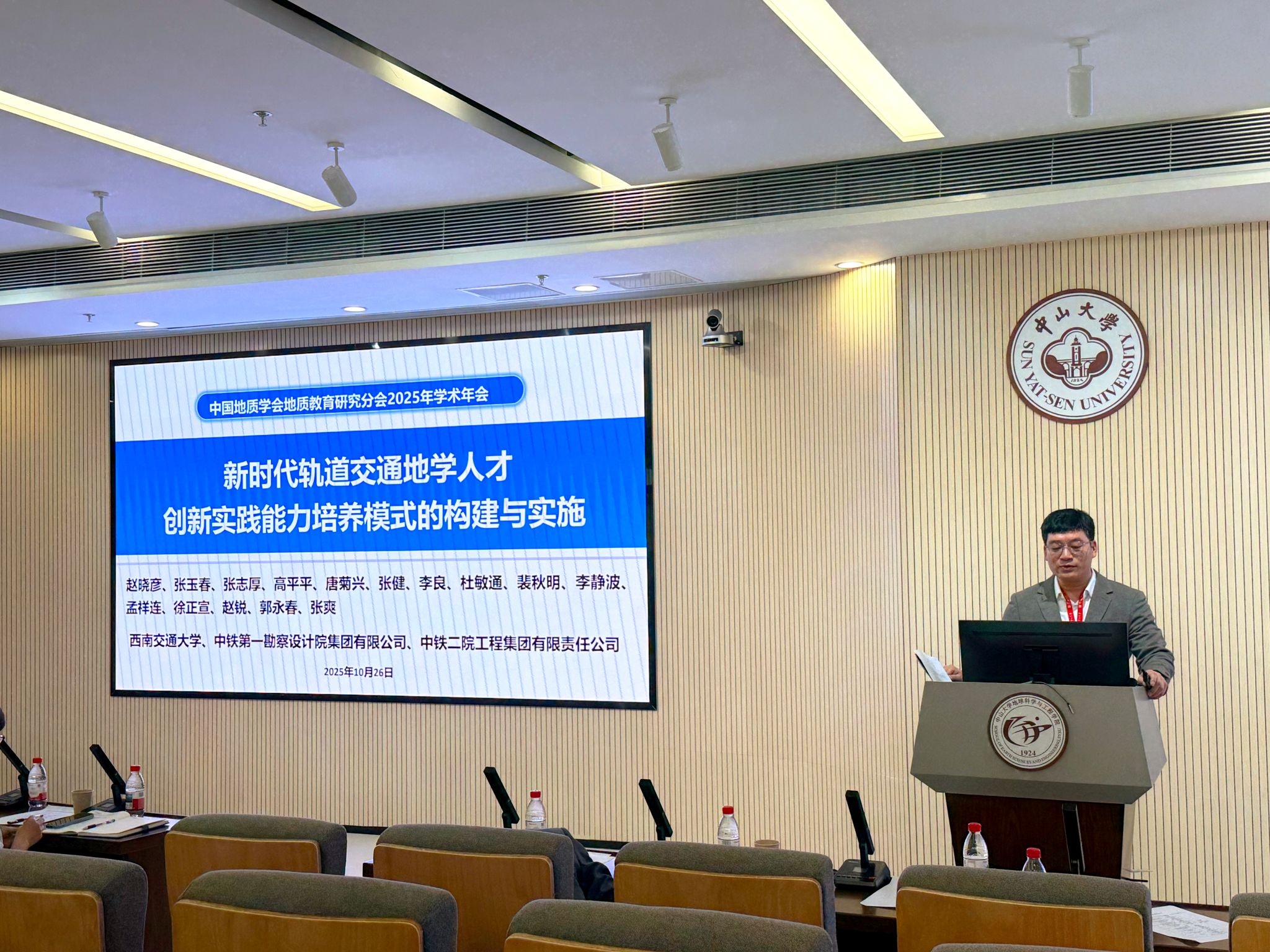 赛场外还同步举办了中国地质学会地质教育研究分会2025年学术年会,年会主题是“数智化转型驱动下的地学教育变革:交叉融合与实践创新”。来自吉林大学、中山大学、中国地质大学、中国矿业大学、西南交通大学等多所高校的专家教授围绕新形势下我国地学创新人才培养的新方案、新赛道与新突破开展深入研讨。带队教师赵晓彦副院长应邀参会,并作了题为“新时代轨道交通地学人才创新实践能力培养模式构建与实施”的主题报告。