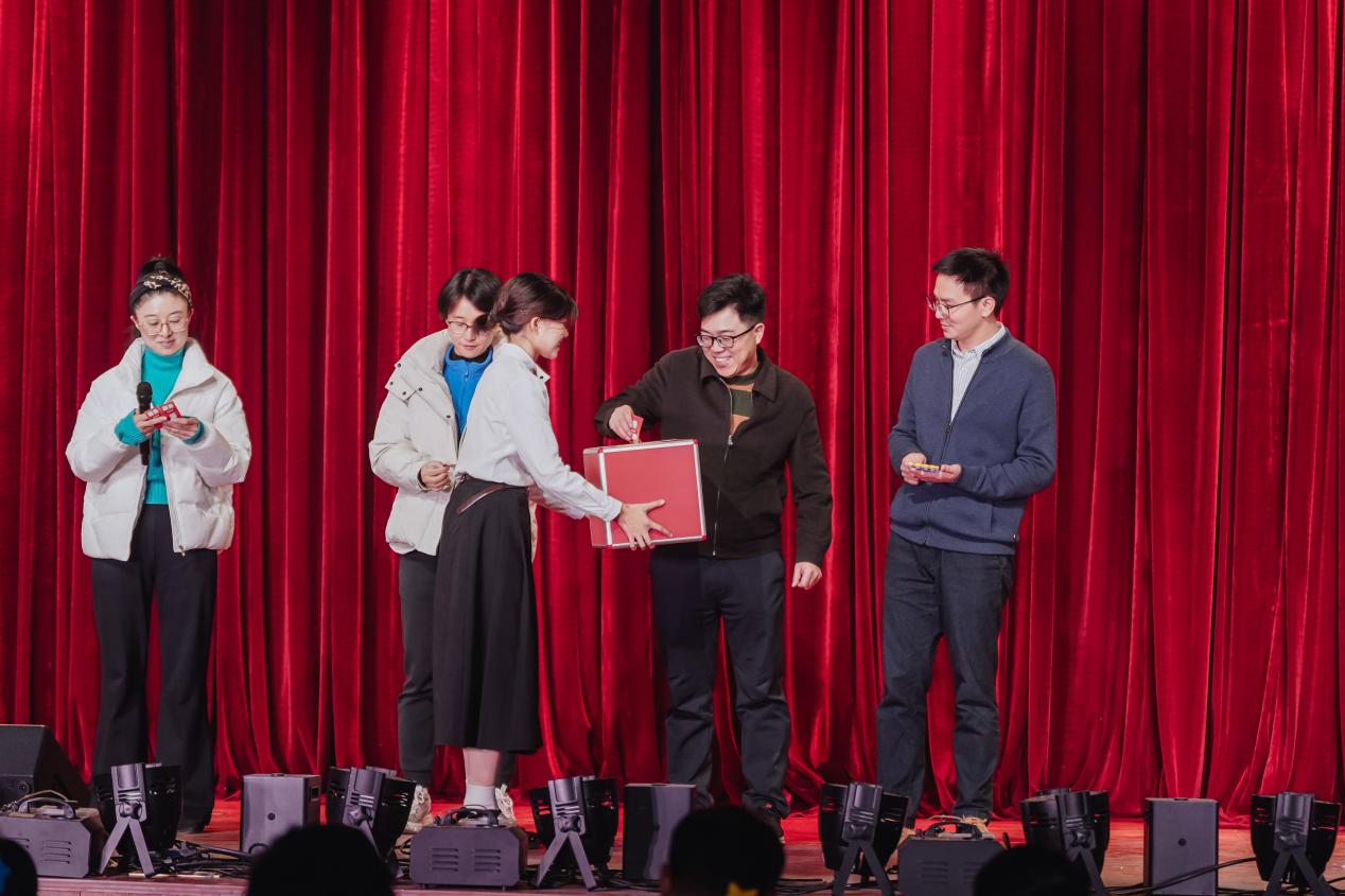 在第三篇章结束之际,张玉春副院长为新生美育系列获奖个人与集体颁奖;郑简平书记抽取最激动人心的一等奖幸运观众。