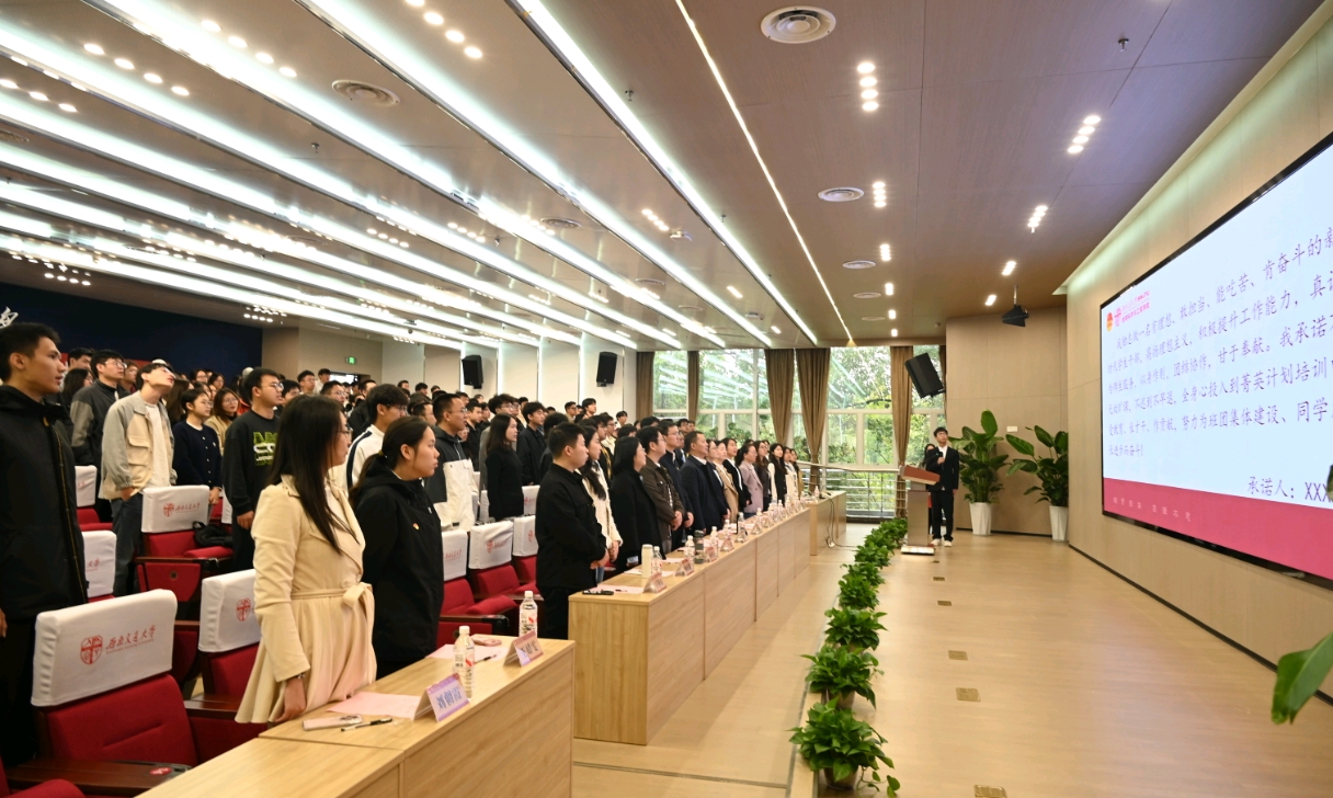 培训学员代表杨秋雨表示,全体学员将以饱满的热情投入学习,珍惜机会,积极提升。随后,全体学员进行庄严的学习承诺!