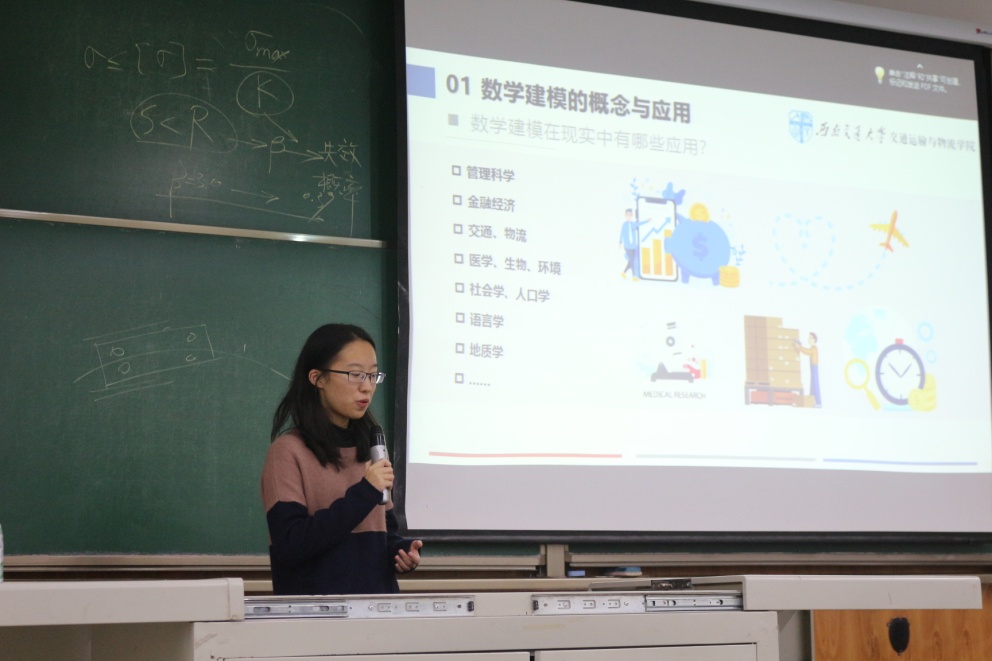 王倩妮向同学们介绍了数学建模的概念和应用,她提到:数学建模的核心内涵是“化繁为简,定量描述”,她随后向同学们详细介绍了进行数学建模的具体步骤。