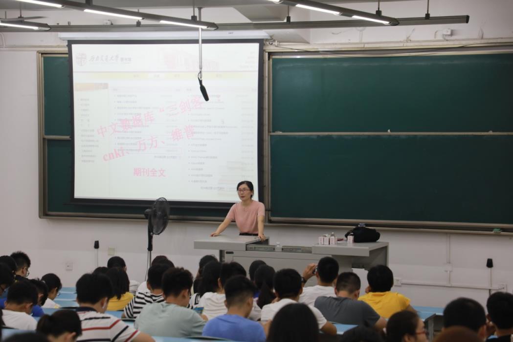 本次活动的主题是“工欲善其事,必先利其器”,江艳萍从认识图书馆、图书馆概况、我的书斋等六个方面展开本次图书馆入馆教育活动。