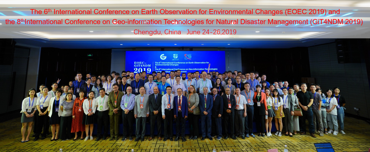 “第六届地球观测与环境变化国际会议暨第八届地理信息技术与自然灾害管理国际会议(E0EC-GiT4NDM2019)”于2019年6月24~25日在成都市皇冠假日酒店顺利召开。来自中国、美国、加拿大、瑞典、印度、日本、沙特阿拉伯、西班牙、德国、荷兰、新加坡、伊朗、泰国、马来西亚等国家的学者、专家和研究生代表共计150余人出席了会议。本次会议旨在为全球地学界的专家提供一个交流平台,加强国内外对地观测技术及环境变化领域学者间的沟通,宣传和交流地理空间信息技术在自然灾害管理中的创新应用成果,并进一步就人工智能和深度学习引领下的2030年智慧环境和智慧城市建设展开深入探讨。