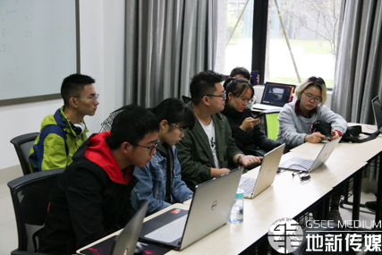 开幕式结束后,地新传媒技术部于X4137开展PS技术培训。同学们分组对PS常用操作和技巧进行学习。