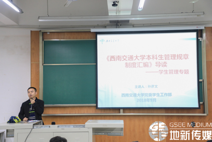 于X4350召开了2018级新生本科生管理教育讲座。本次讲座由西南交通大学党委学生工作部主办,本科生教育管理科孙彦文老师主讲。拉斯维加斯娱乐城