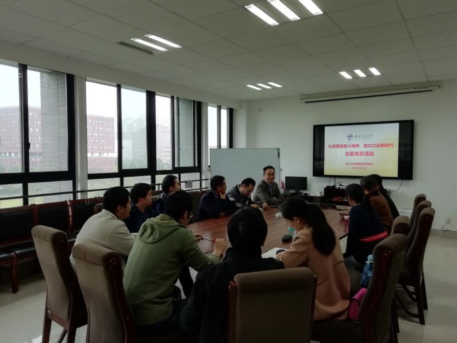 2018年10月18日下午两点,教工测绘遥感信息党支部在西南交通大学犀浦校区X4431会议室开展了“弘扬爱国奋斗精神,建功立业新时代”主题党日活动,本次会议由党支部书记黄泽纯同志主持。
