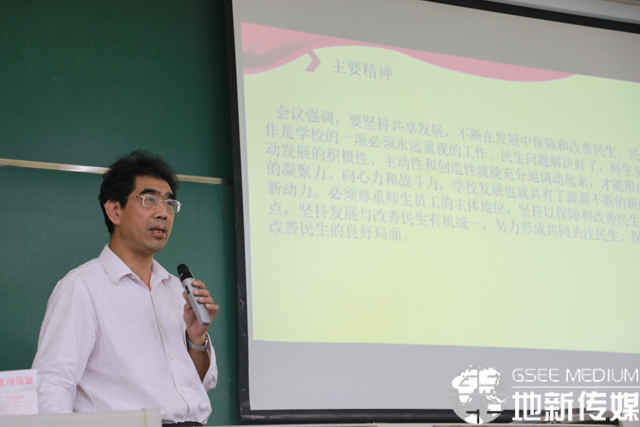 傅尤刚就2018届毕业生就业情况和招生情况进行通报。傅尤刚介绍,今年我院本科生、研究生继续深造率达38.14%,博士生全部就业。其后,傅尤刚对2018年以来我院测绘等专业科研竞赛的获奖情况向老师们进行了介绍。最后,傅尤刚讲解了纪委的相关工作,并就师德师风、科研等方面规定向在场老师进行了说明。