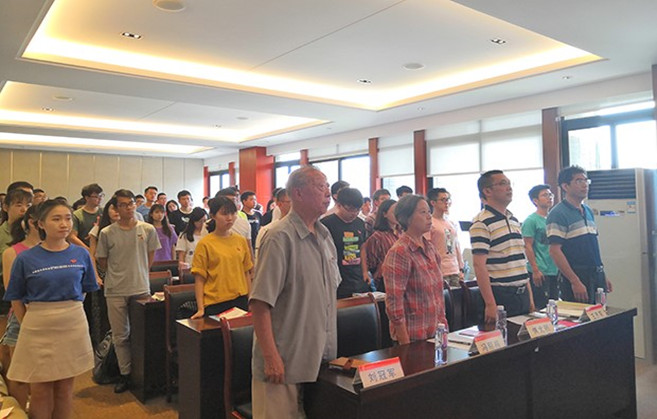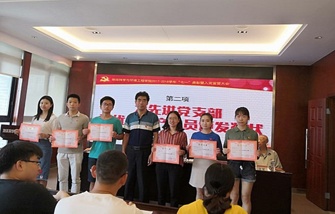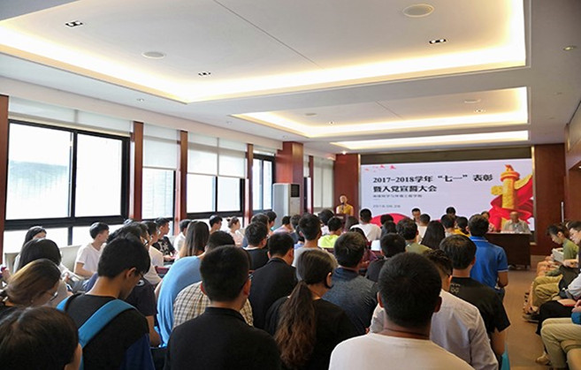 党委在X4520教室召开2017-2018学年“七一”表彰暨入党宣誓大会。院党委书记王齐荣,党委副书记傅尤刚,党委组织员刘冠军、冯丽梅以及受表彰的先进集体代表、优秀个人和新党员参与会议。会议由党务主任李晓宇主持。