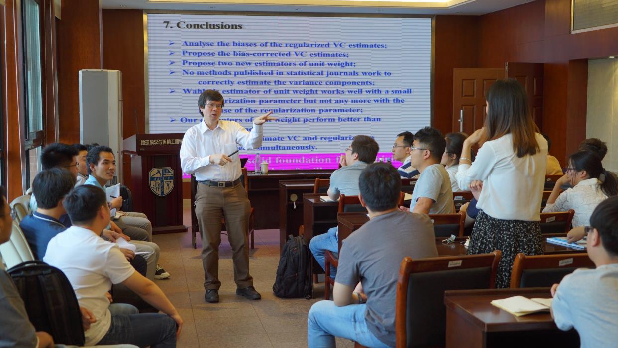 测绘系开展学术交流,并在X4520做了题为“Combining different kinds of data in linear inverse ill-posed models”的学术报告。会议由范东明教授主持,熊永良教授、周乐韬、龚晓颖、田玉淼、游为等老师、西南石油大学苏勇老师、测绘系部分本科生、研究生和博士参加了本次报告会。徐培亮老师分析了由于系统的不稳定,导致现有病态问题的方差分量估计并不能用传统的赫尔默特方差分量估计方法进行求解的问题,并提出了新的计算方法,通过重力场反演等算例验证了新方法的有效性和可靠性。报告结束后,老师同学们就截断奇异值的病态问题解算、地震波反演、整周模糊度解算、星间链路方差分量估计等问题与徐老师进行了深入交流探讨。老师同学们都表示徐老师深入浅出的讲解让大家受益匪浅,并从世界顶级科学家的经历中学到了应如何从事研究,从事什么样的研究等方法和经验。