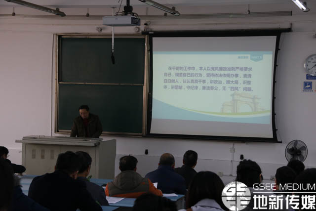 欧阳峰从六个方面对2017年工作进行了汇报,包括资产与实验室工作、环境、地质专业认证、本科教学审核评估工作、峨眉新办本科专业工作、个人学习计划及联系支部情况、廉政情况。
