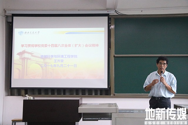 会议第三项,王齐荣传达中共西南交通大学委员会十四届八次全体(扩大)会议精神。王齐荣介绍到中共西南交通大学委员会十四届八次全体(扩大)会议于2017年8月30日至31日在成都九里校区召开,会议主要听取和讨论了王顺洪同志所作的《坚定不移朝着“交通特色鲜明的综合性研究型一流大学”总目标,扎扎实实建设轨道交通领域世界第一的西南交通大学》的讲话。讲话内容主要分为人才工作、经济工作、干部队伍建设及以全方位的一流工作带动一流大学建设共四个方面。其中,人才工作中要落实人才工作责任制,引育并举;经济工作中引资工作要上升为学校硬任务,全面加强对外合作工作,并全面全力全方位加强校友工作,加强学校企业和公司经理队伍建设,全面加强校内管理,增收节支,持续推进减员增效;在干部队伍建设中,交大的好干部是忠诚、干净、担当、肯学习、勤思考、身先士卒主动干的;在以全方位的一流工作带动一流大学建设中切实领会思政工作是涉及和影响全校各项工作的好坏、优劣的全局性工作,通过西南交通大学思政工作的一流带动全校各项工作对标一流、争创一流、实现一流。