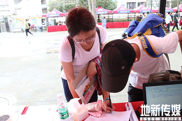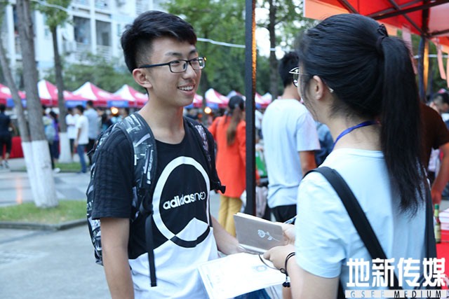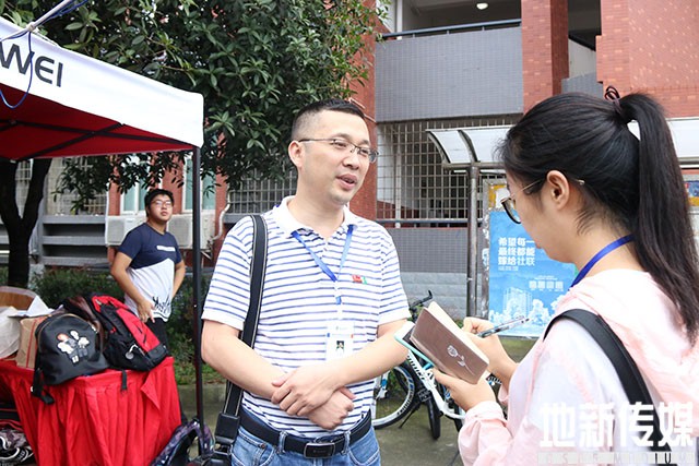 第一位本科新生完成报道,接受地院传媒记者采访。