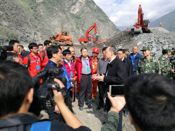 6月27日上午, 国土资源部副部长凌月明作为国务院工作组组长,对包括茂县叠溪镇高位滑坡在内的地质灾害高度重视,受国务委员王勇委托,又专门带领包括胡卸文在内的专家组对目前处于强烈变形的石大关乡政府对岸高位滑坡进行踏勘诊断,根据专家组意见,提出针对危险区内居民避险搬迁和对滑坡体变形监测的安排,以防范再次发生特大地质灾害危害。