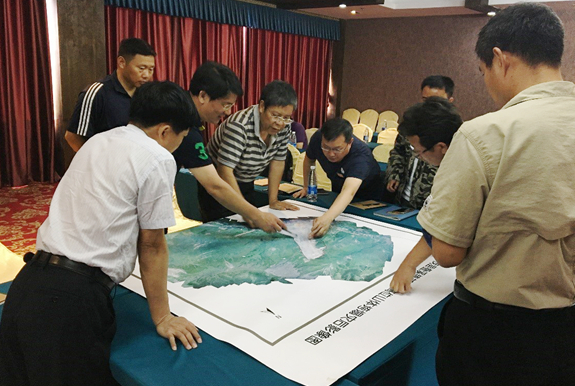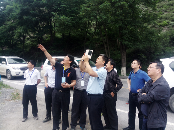 胡卸文与国土资源部副部长凌月明(右三),省国土资源厅厅长杨冬生(右五)查看茂县石大关乡对岸滑坡
