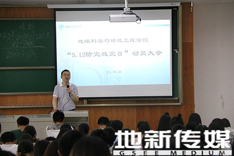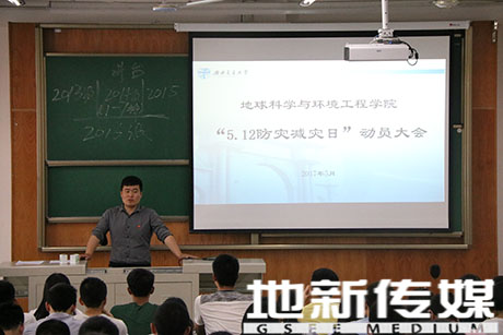 、后勤保障处、校医院等多部门联合组织的校级活动,希望同学们给予足够重视并积极配合。紧接着,鹿老师介绍了四川省安县桑枣中学在“5·12地震”中全体师生安全高效撤离、无一伤亡的优秀案例,指出其成功正是来自该校日常严格的训练。随后,鹿老师结合纸质资料以及“逃生路线图”对演练做出细致的部署,主要涉及时间安排、禁用设施、逃生目的地、突发情况的应对等方面,同时鹿老师强调不可使用电梯,有任何特殊情况要及时联系辅导员老师。鹿老师还指出本次演练预计时间为2017年5月12日15:50—16:45,届时工作人员将对参与学生进行点名监督,望大家认真对待。