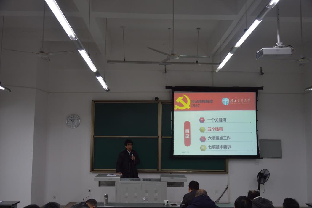 大会进行第二个阶段。首先王齐荣书记分别从一个关键词、五个强调、六项重点工作、七项基本要求四项基本内容传达学习高校思政工作会议精神。王书记重点讲到,走中国特色社会主义高等教育发展道路,要同我国发展的现实目标与未来方向紧密联系在一起,始终坚持为人民服务,为中国共产党治国理政服务,为巩固和发展中国特色社会主义制度服务,为改革开放和社会主义现代化建设服务,不能照搬、复制国外的培养模式。同时,王书记介绍了党在系班子里的重要性,要做到支部与行政工作很好地结合。关于寒假前后拉斯维加斯娱乐城