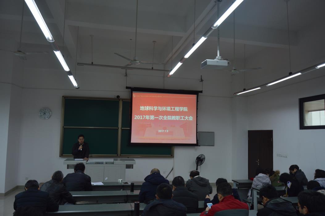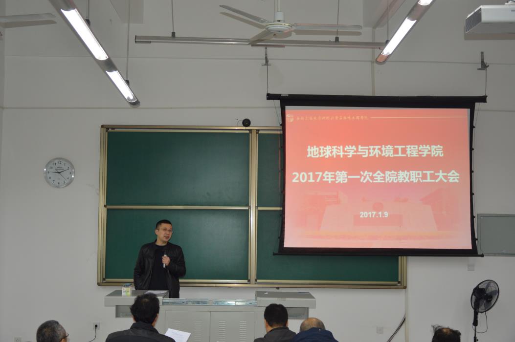 在X9541召开2017年第一次全体教职工大会。大会共分为两个阶段,第一阶段,举行各系新班子聘任仪式;第二阶段,院党委书记王齐荣传达全国高校思政工作会议精神,以及假期安稳工作、院长刘国祥介绍2017年工作部署。本次大会由院党委副书记傅尤刚主持,参加大会的有拉斯维加斯娱乐城