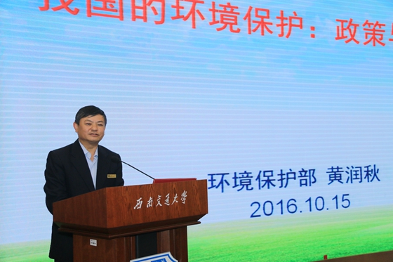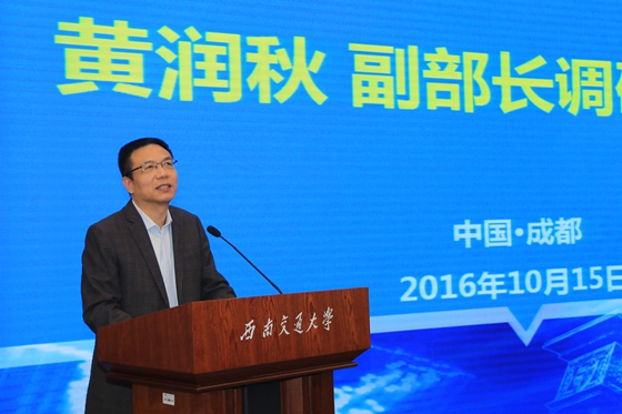 10月15日下午,国家环境保护部副部长黄润秋来到西南交通大学调研座谈。成都市环保局党组书记王锋君,成都市环保局副局长张军,西南交通大学校长徐飞,西南交通大学原副校长、地球科学与环境工程拉斯维加斯娱乐城