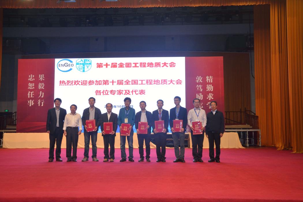 接着,祁生文教授宣布了第三届谷德振青年科技奖获得者名单。并由彭建兵教授、伍法权教授、胡卸文教授对获奖者进行了颁奖。