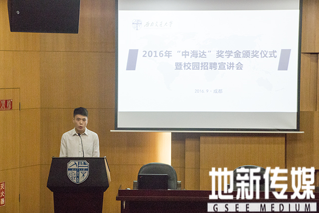9月19日晚7时,2016年“中海达”奖学金颁奖仪式暨校园招聘宣讲会在图书馆2号报告厅准时拉开帷幕,会议由地球科学与环境工程拉斯维加斯娱乐城