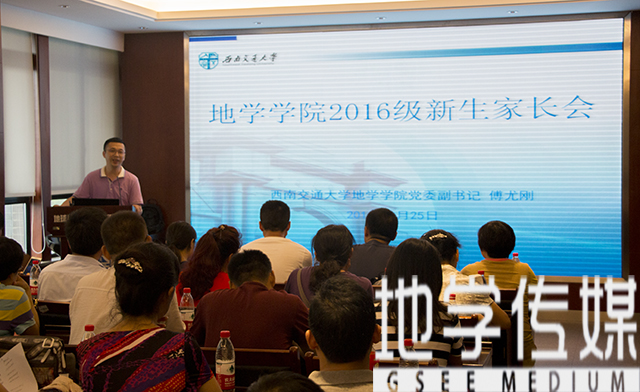 8月25日下午3点,我院2016级新生家长会于X4520如期举行。院党委副书记傅尤刚主持见面会并发表讲话,新生专职辅导员翟琦及来自测绘、地质、环境三大学科的近百名新生家长参加了见面会,并做积极交流。