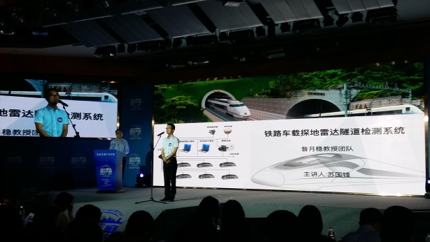 本次路演分为极速路演(6个项目)和终极路演(5个融资项目),共有11个项目,它们为本次活动展示了在轨道交通产业方面的新技术,新趋势。我院研究生苏国锋参加了极速路演,做了题为“铁路车载探地雷达隧道检测系统”的演讲,得到了现场极大的关注,演讲过后与昝月稳教授一同接受了四川广播电台记者的采访。