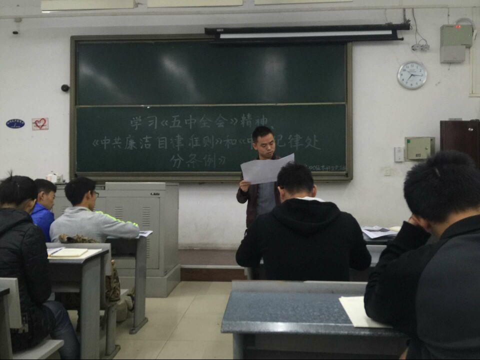 2015级本科生党支部开展“懂规矩,守纪律”主题活动——学习《十八届五中全会》精神、《中国共产党廉洁自律准则》和《中国共产党纪律处分条例》