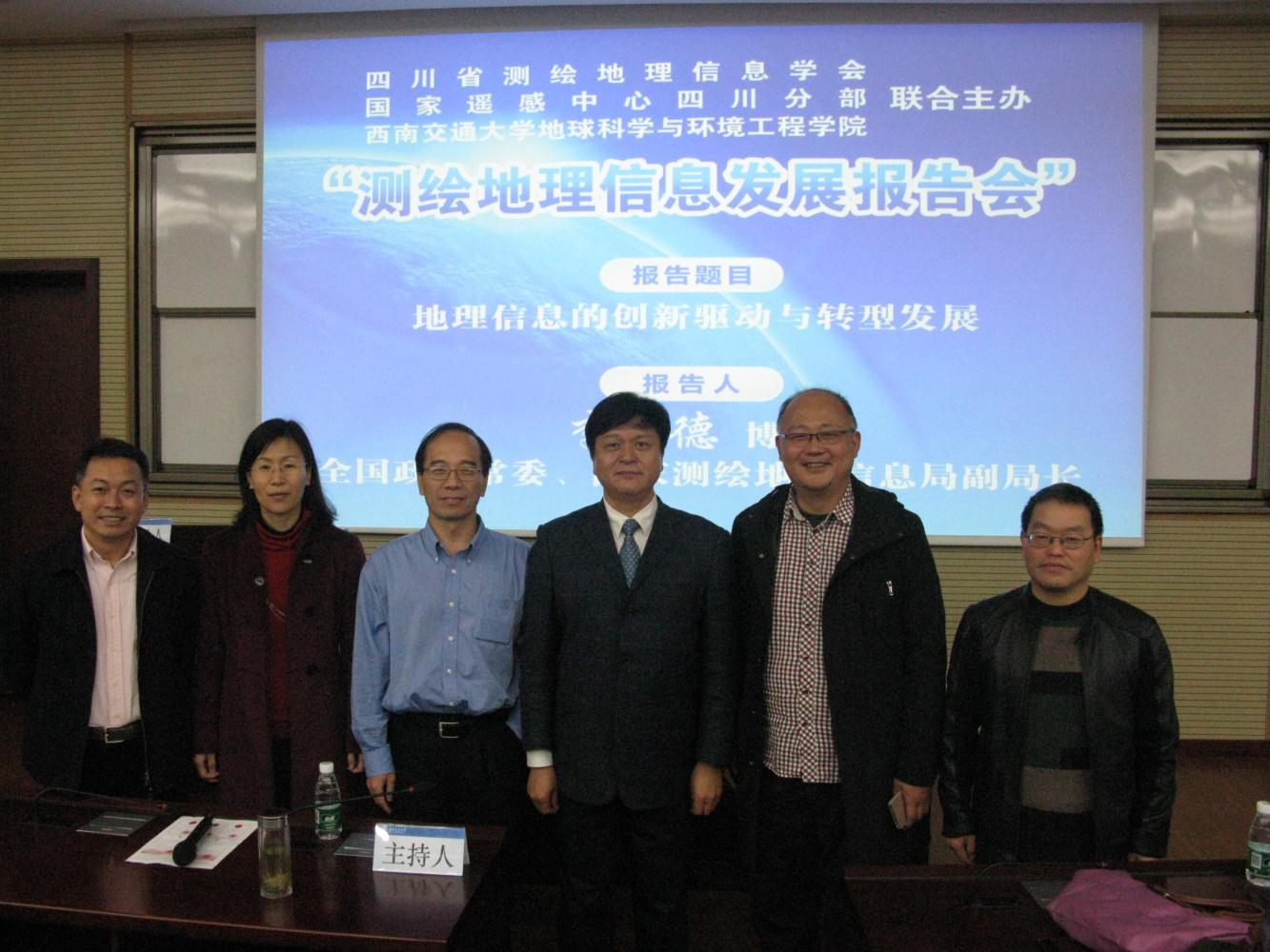 联合主办的“测绘地理信息发展报告会”在九里校区西南交通大学信息楼0212室成功举行,特邀全国政协常委、国家测绘地理信息局副局长李朋德博士做主题报告:地理信息的创新驱动与转型发展。国家测绘地理信息局科技与国际合作司燕琴副司长应邀参会与大家交流。来自全省测绘地理信息领域的高等学校、科研院所和企事业单位的代表100余人参加了报告会。