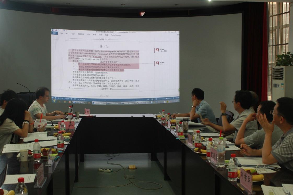 2015年7月11日,国家科技支撑计划课题“位置传感网与全息位置地图关键技术及应用”研究成果之标准征求意见稿讨论会在测绘遥感信息工程国家重点实验室(武汉大学)成功举行。来自国家科技部遥感中心、国家信息中心、国家基础地理信息中心、全国地理信息标准化委员会、西南交通大学、南京师范大学、浙江大学、天地图有限公司、武汉大学等单位的专家及课题组成员就“全息位置地图参考模型”、“室内位置传感网定位服务接口”和“室内多维位置信息标识语言”三个标准规范(征求意见稿)的条款进行了深入细致的讨论和修改完善,取得了预期成果。我院朱庆教授应邀作为专家参加了此次会议。