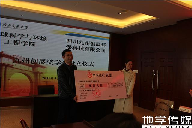 对九州创展环保科技有限公司慷慨解囊、捐资助学表示衷心感谢,并对该项奖学金评选对象、评定条件等进行简要介绍。