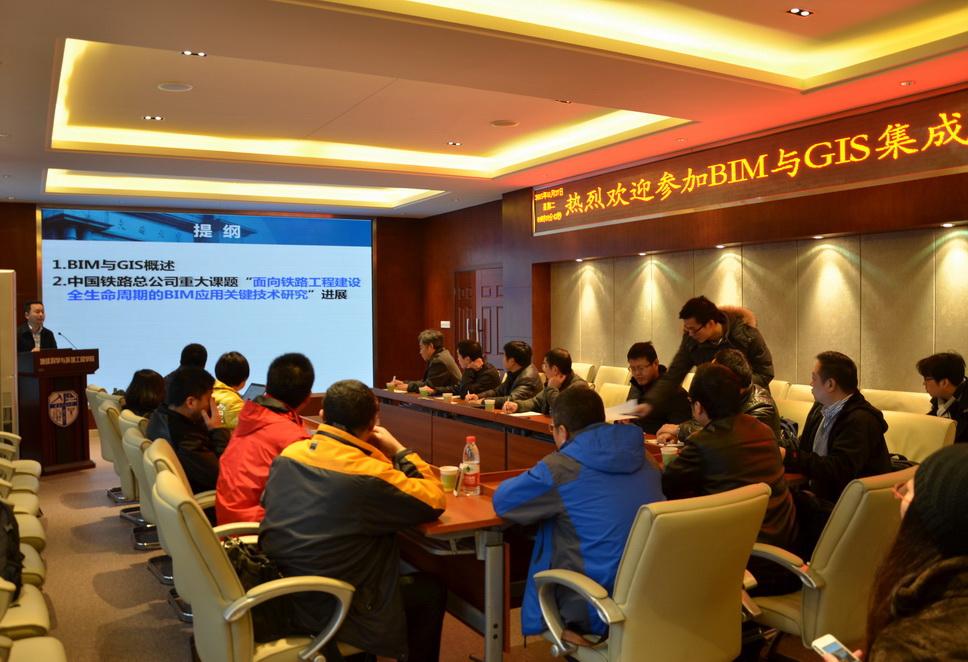 西南交通大学科学技术处张骏副处长应邀参会并致欢迎辞,朱庆教授简要介绍了中国铁路总公司科技研究开发计划重大课题“面向铁路工程建设全生命周期的BIM应用关键技术研究”以及西南交通大学承担的子课题研究进展,王长进大师、张金龙总工、唐坤益副处长、闵世平部长、韩元利博士、王伟玺博士、郑亮高工等分别就BIM与GIS集成应用的重大需求、技术挑战和体制机制创新等方面做了主题发言,大家就关心的问题展开了热烈的讨论。