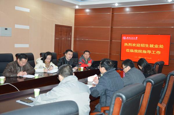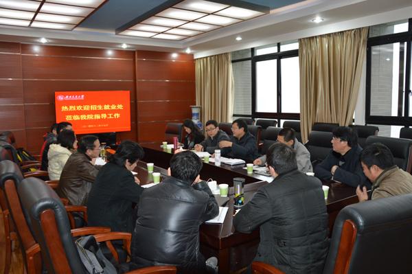 12月28日上午,西南交通大学招生就业处谭建鑫处长一行到我院进行本科生考试招生制度改革调研座谈会。我院党委书记徐瑞堂、执行院长朱庆教授,副院长胡卸文教授,院党委副书记傅尤刚等院领导,相关系主任及部分教师代表参加调研座谈会。