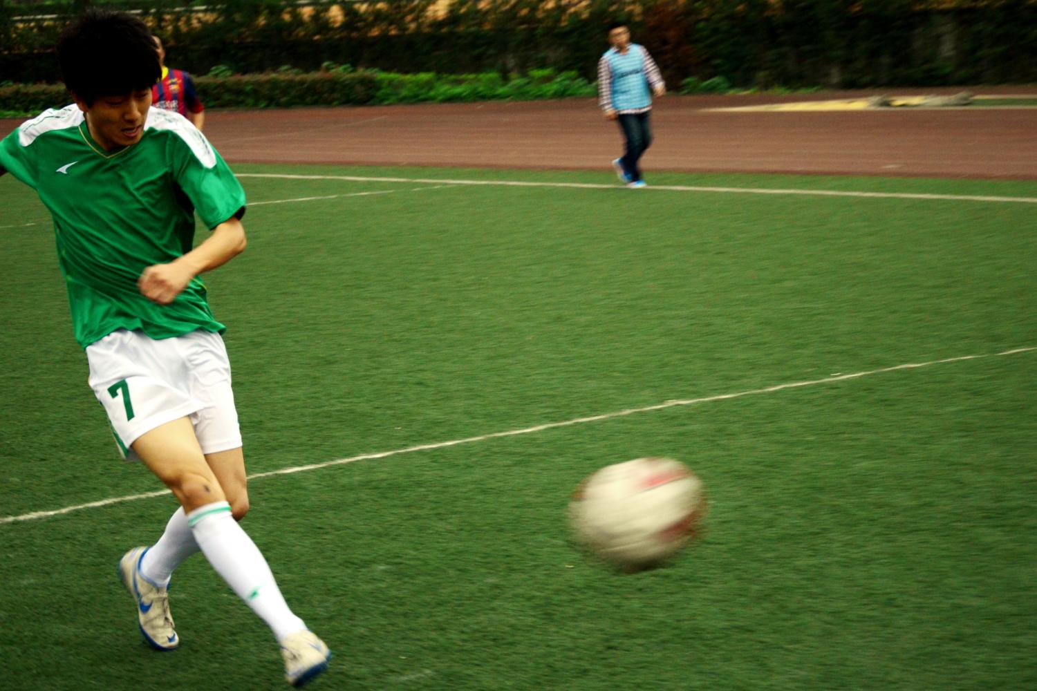 教工代表队无疑是本届比赛的夺冠大热门。我院教职工足球队倍感压力。经过赛前热身,比赛终于在下午五点四十正式开始。