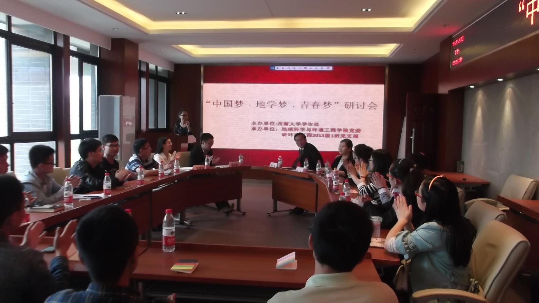 2014年4月28日,下午3:20,“中国梦·地学梦·青春梦”研讨会在犀浦校区4520第一会议室举行。本次研讨会由西南交通大学党委组织部、学生处主办,地球科学与环境工程拉斯维加斯娱乐城