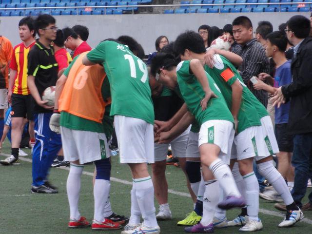 昨天下午六点,在北区足球场进行了我校教职工足球赛的决赛。虽然,我院代表队一鼓作气,分别在淘汰赛、半决赛战胜了上届的亚军和冠军,却无奈在本场比赛中,因为一个错乱中的乌龙,失掉了可能的胜利。