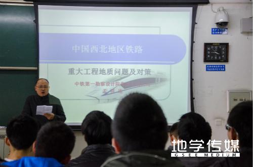 11月5日下午3点半,在犀浦校区X2524教室,中铁第一勘察设计院集团有限公司副总工程师、陕西省优秀勘察设计师、教授级高级工程师、地质工程专业87届杰出校友孟祥连大师应我院邀请为我院研究生以“中国西北铁路重大工程地质问题及对策”为题展开讲解,为地院的同学们带来一场学术盛宴。我院的齐华副院长、巫锡勇教授、副教授、文江泉副教授出席了这次讲座,地质工程专业的研究生也到场积极认真聆听了本次讲座并认真做了笔记。本次学术讲座由齐华副院长主持。