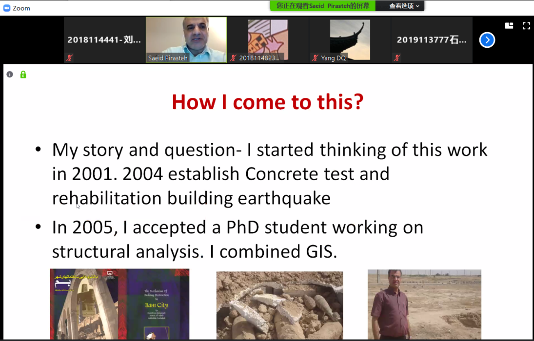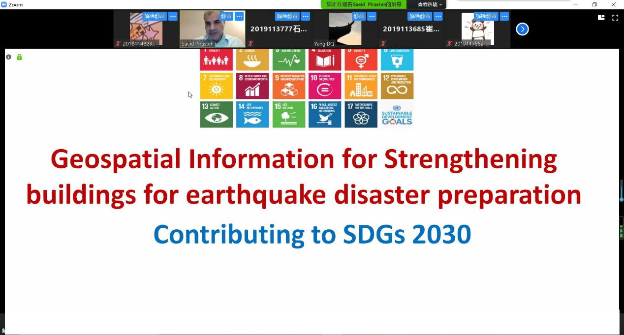 外籍教师开展“国际化+名师讲堂”国际视野与出国留学系列第一期讲座,本次讲座通过线上平台“腾讯会议”进行,主讲人为Saeid(Adam) Pirasteh教授,讲座由杨都强老师主持,活动主题为Geospatial Information for Strengthening building for earthquake disaster preparation (加强建筑物抗震救灾的地理信息有助于实现可持续发展)