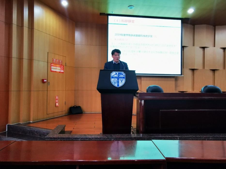 副院长齐华进行2019学位与研究生教育年度考核汇报与个人述职。主要围绕研究生招生、教学与管理、学位论文及授位管理、导师队伍建设、非全日制专业学位研究生教学与管理、综合管理、其他项目等七个方面做考核汇报。