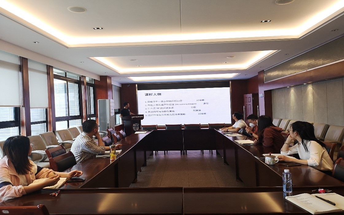 杨都强老师分别就培训内容进行回顾、我院就业指导工作的开展、下一步的工作计划等内容进行交流。杨都强老师介绍我院就业指导工作体系依托学业辅导中心、校企联合中心、就业特色工作室三大平台,开展领航计划、护航计划、企航计划、深造计划、职达计划五大计划,以习惯养成、能力提高、意识培养、素养提升、目标达成为目的,形成全面推进就业工作、以深造工作为重点、助推学生高质量就业的总体思路。下一步就业指导工作的重点为通过开设《地学生涯与发展规划》通识课,以点带面,以自我强化为基础,做好理论研究与实践设计;以学生干部为重点,形成生涯意识浪潮;与专业教育、创新创业教育相结合的地学职业生涯发展教育的模式、方法和体系。参会老师积极参与讨论,踊跃发言