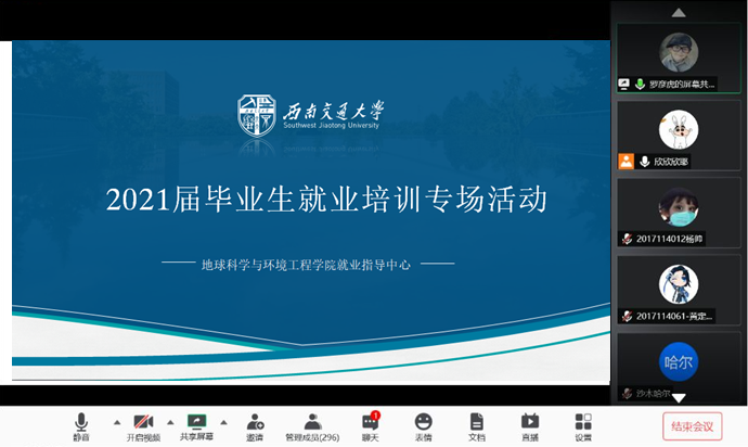 开展2021届毕业生就业动员大会,本次动员大会邀请了就业处董浩老师作就业形势分析、优秀学长代表罗彦虎做简历制作指导,以“学生就业培训”为主题,因受疫情影响大会以腾讯会议为平台,分为二个部分进行。